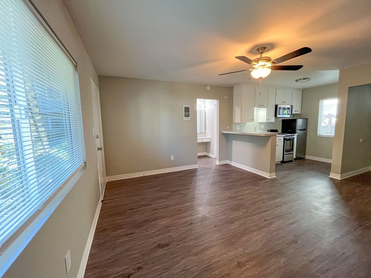 As you enter the unit you will find vinyl plank flooring carries through the entire floor plan of this apt. Accented with a warm paint color throughout. The main living space offers a ceiling fan and electric heat.