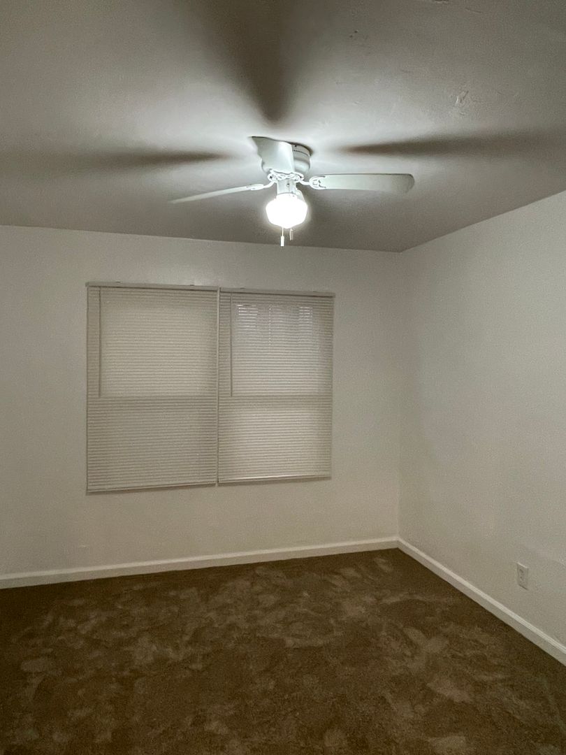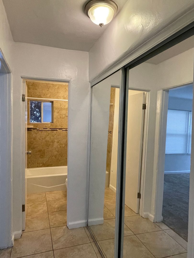 There is a large mirrored closet in the hallway allowing for maximum storage ability. The spacious bedroom with a ceiling fan also includes another large mirrored closet.
