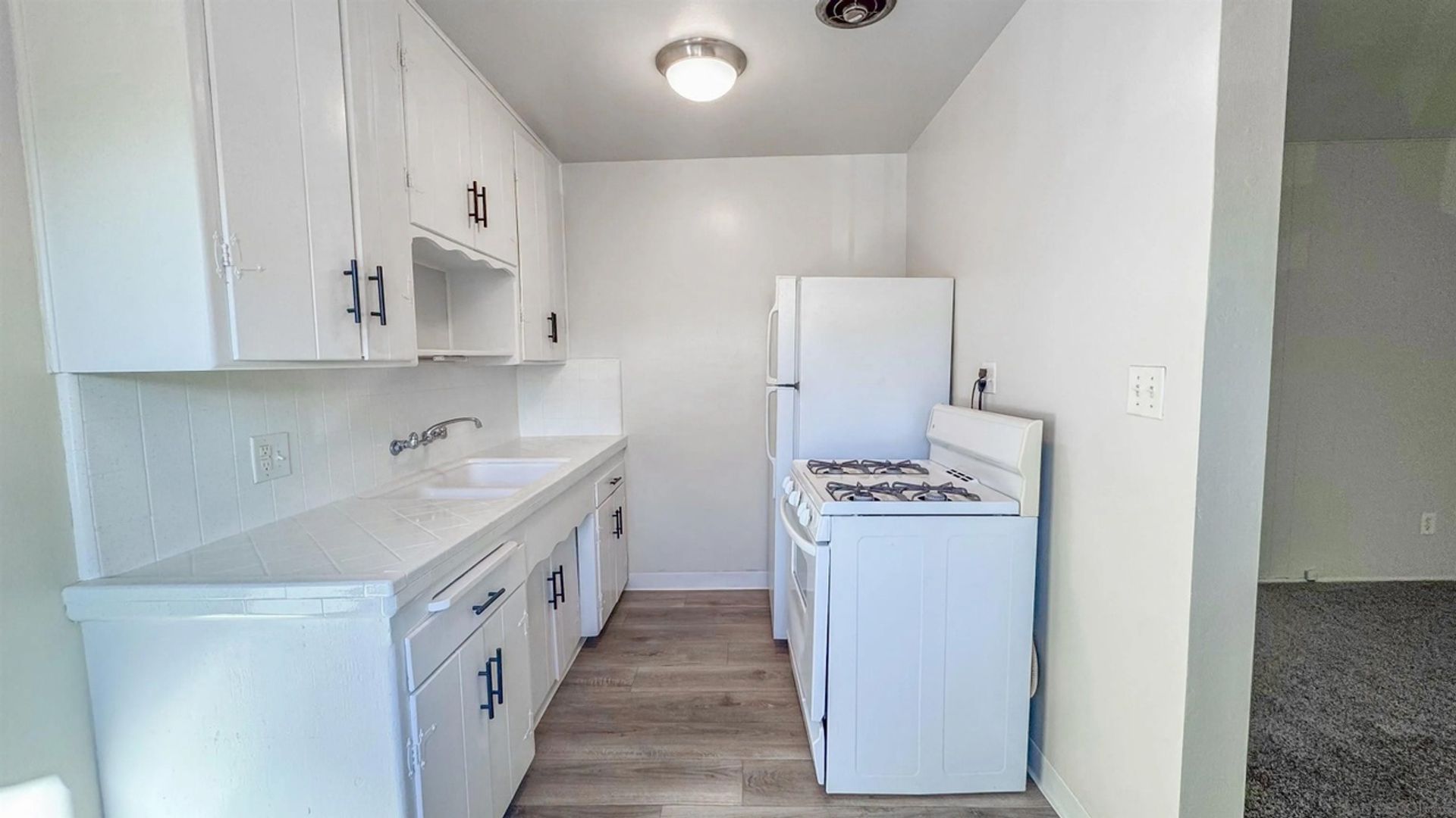 We are pleased to present this freshly updated light and airy 1 bedroom apartment. The kitchen includes a new refrigerator and stove and has a small nook perfect for a table and chairs. The home includes chic vinyl flooring in kitchen and bath, and newly installed plush carpet in living room and bedroom. New horizontal blinds in kitchen, living room, dining room and bedrooms complement the double-pane vinyl windows. There is wall heating in the living room as well as a built in A/C unit. The well-appointed bathroom has a tub/shower combo. Enjoy the spacious private balcony!