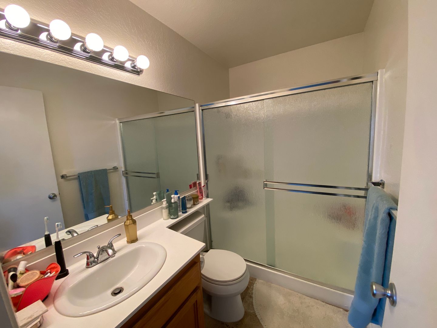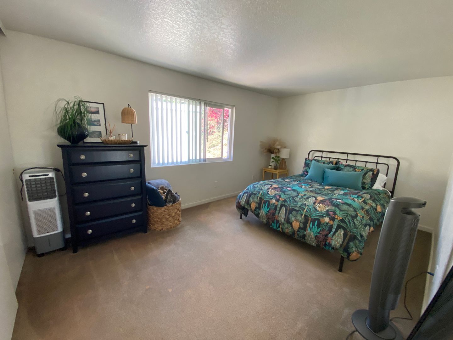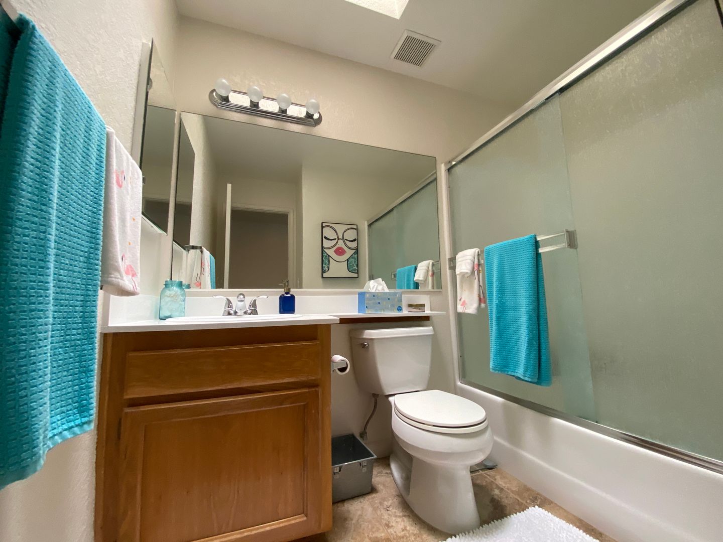 There is another large bedroom with a walk-in closet that is complete with built ins. The bathroom is spacious.