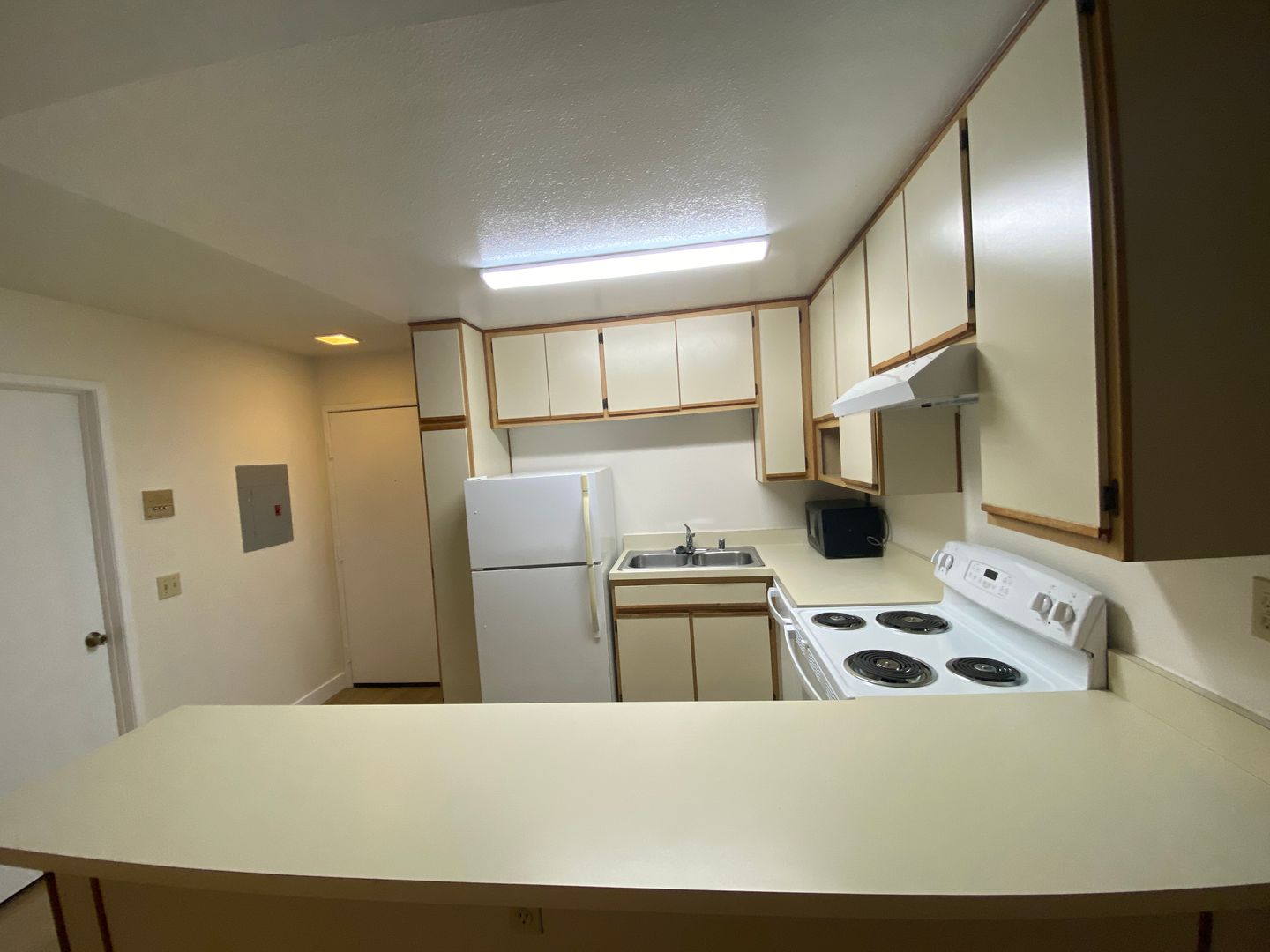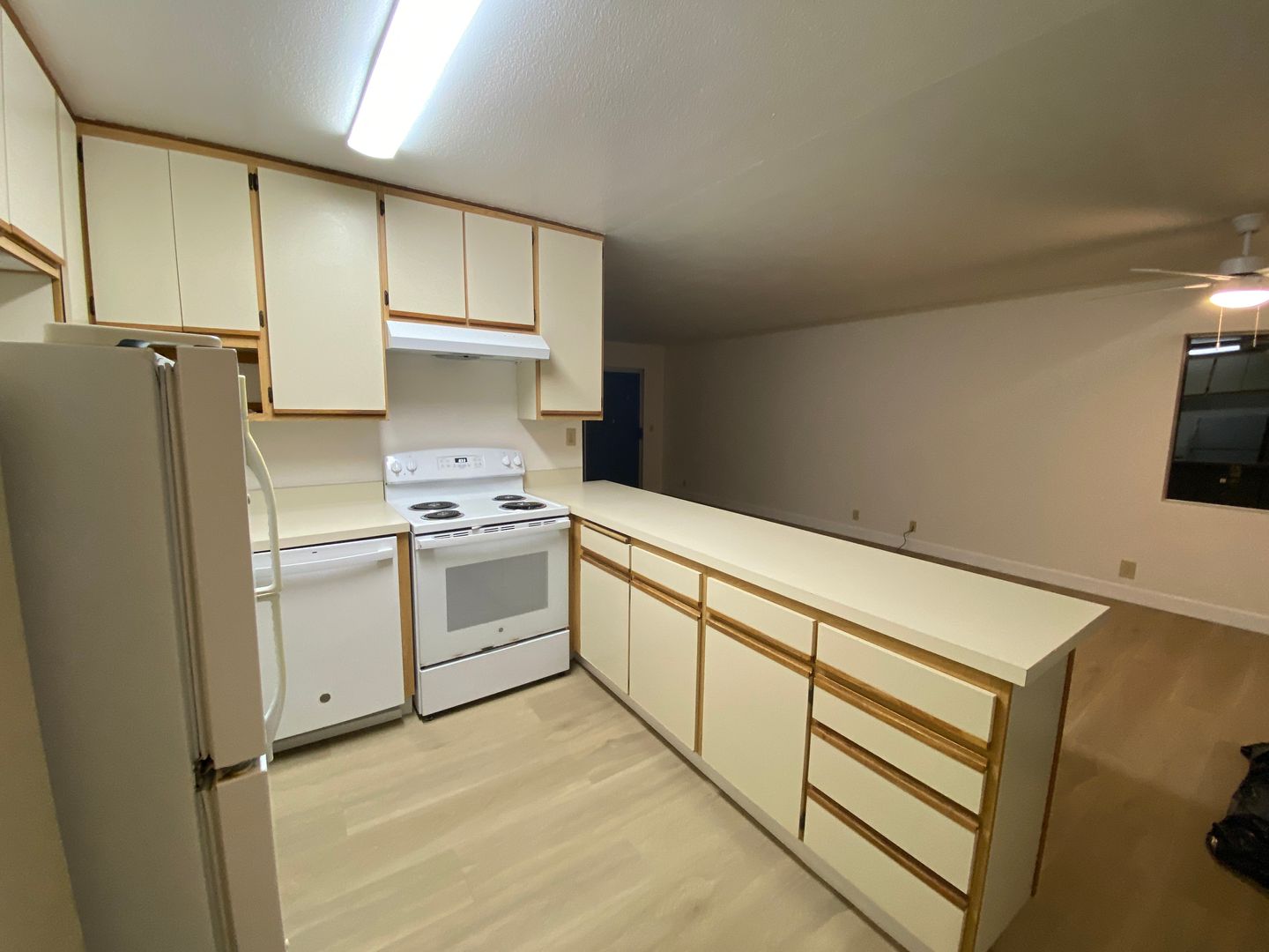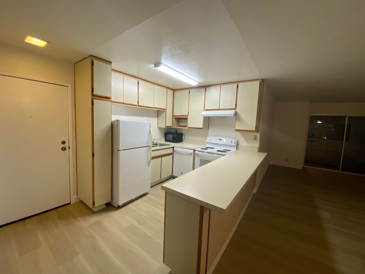 This very spacious apt offers a warm shade of new plank flooring. Newly painted you feel the freshness throughout the apt.