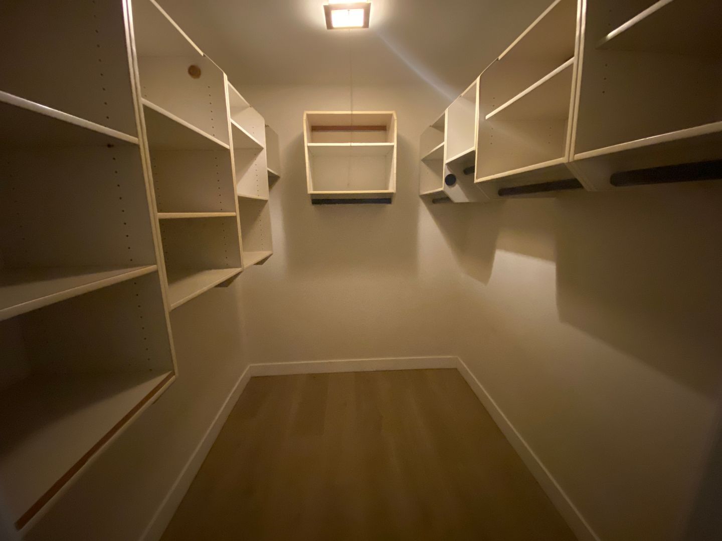 The bedroom can accommodate a king size bed. Walk-in closet offers built ins.