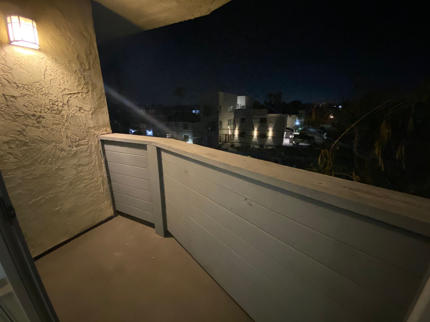 There is a patio off the living room.