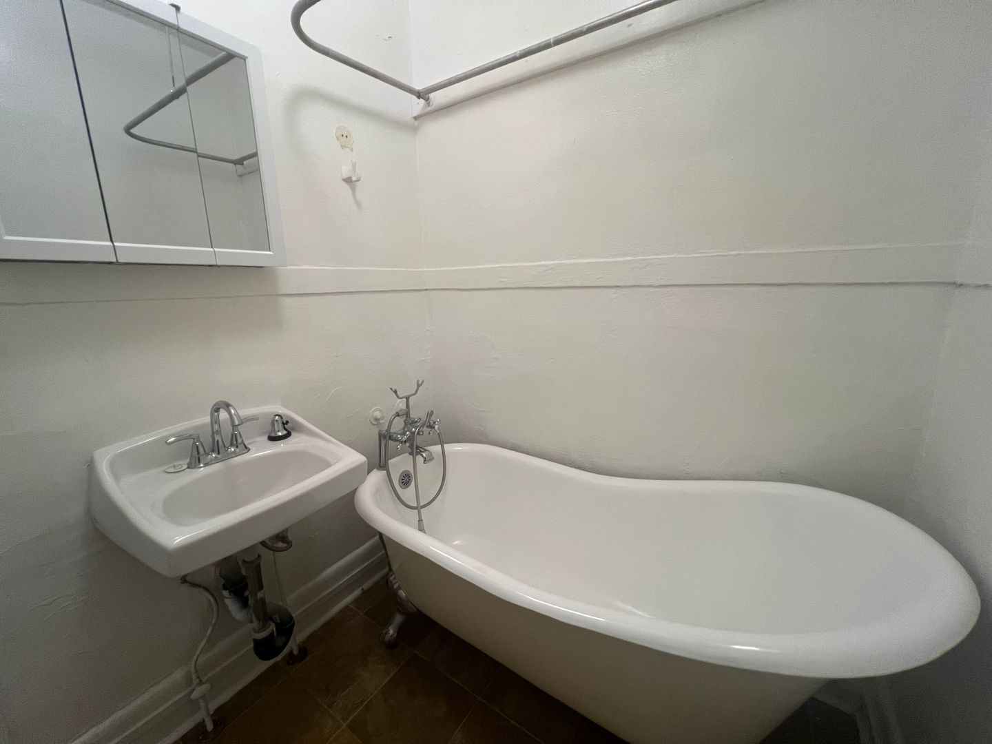 The bathroom offers a claw tub, if you want to soak in a relaxing tub.