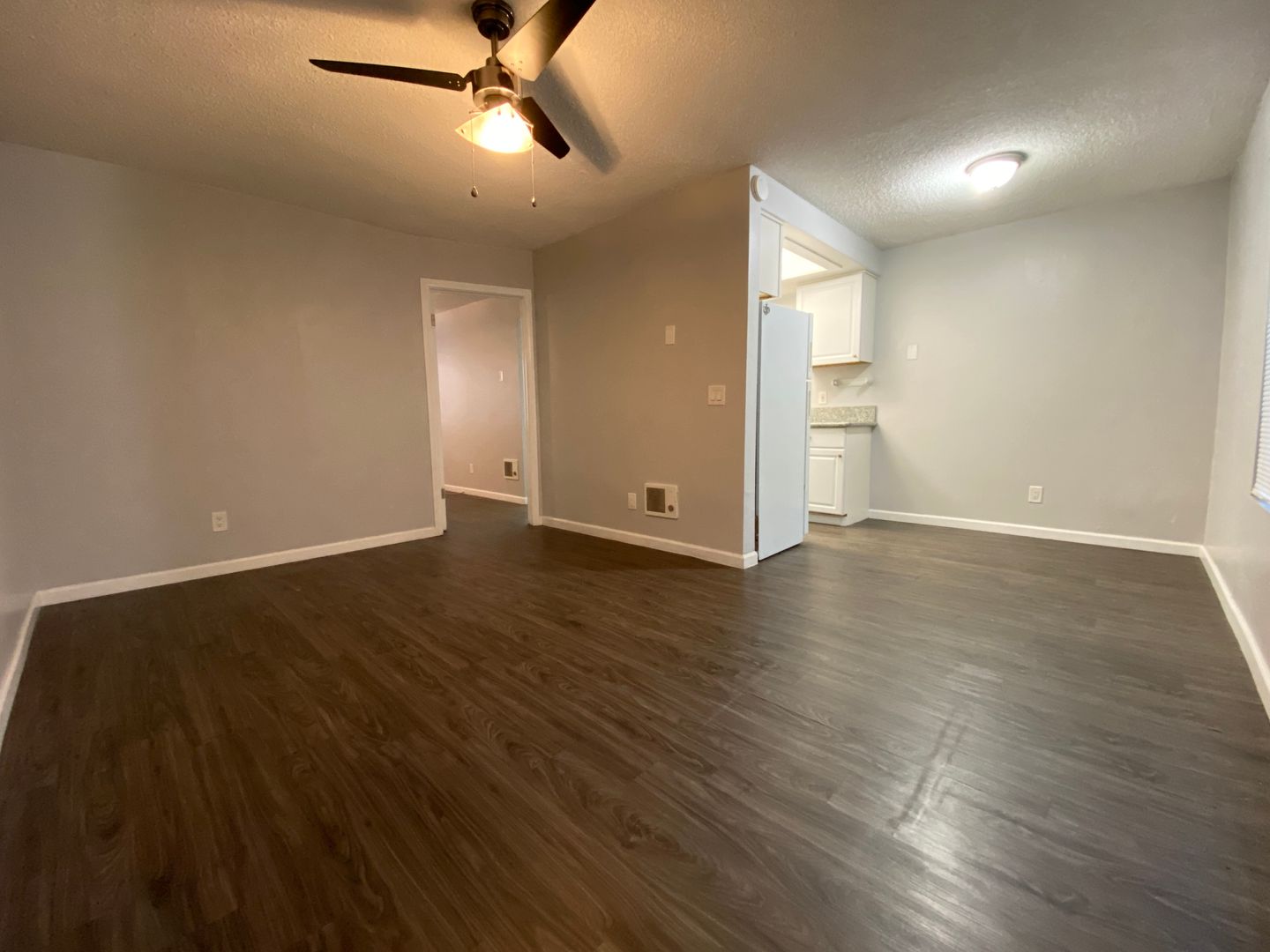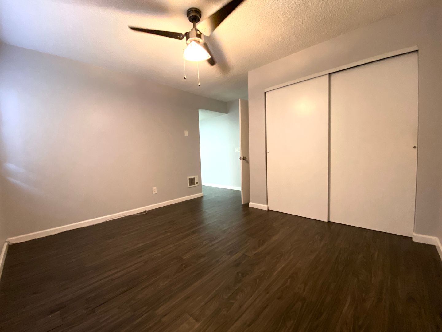 This unit is updated to a modern new look. The color scheme throughout the unit is carried out in each room giving a beautiful modern look . The flooring in each room is as well. The spacious living room provides a modern ceiling fan, electric heat and new window coverings.