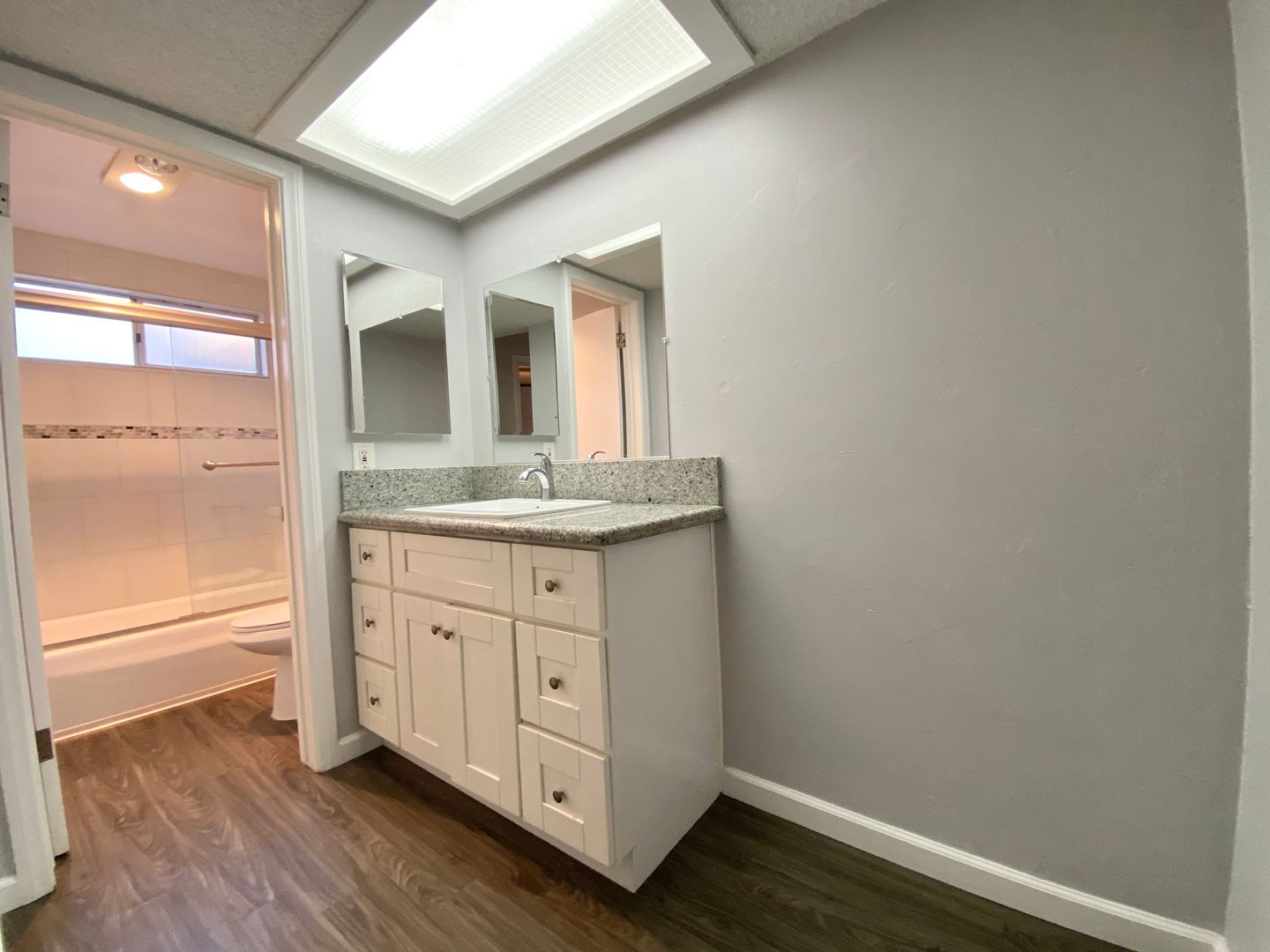 The bedroom can fit a queen size bed. It has a unique ceiling fan and offers electric heat and new window coverings. The bathroom has been completely updated including a beautifully custom tiled shower with new doors. The counter and cabinets and fixtures are all upgraded as was the flooring. Full tub/shower.