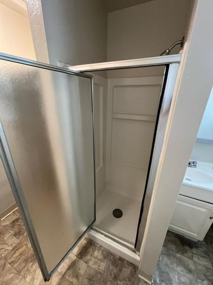 The kitchen has tile counters and a full size pantry, with an abundance of cabinet space. As you walk through the kitchen there leads a back door exit to your own patio area.