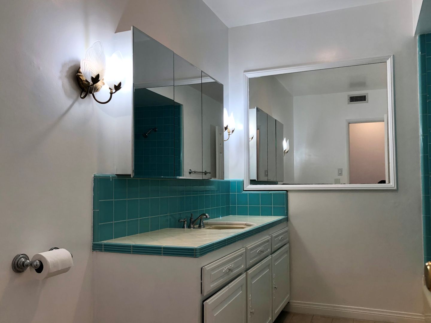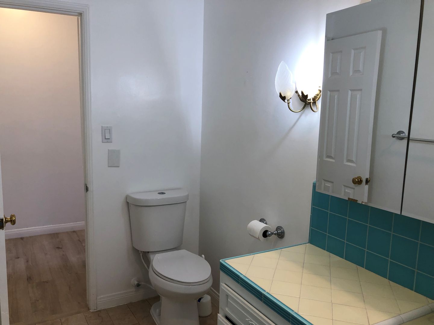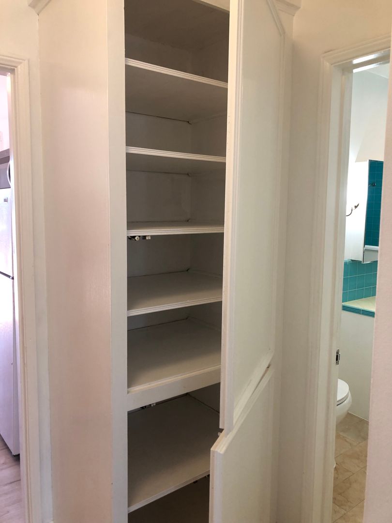 The bathroom is very large and includes a full tub/shower, a large vanity counter and plenty of cabinet space. There is a very large hall closet for storage.