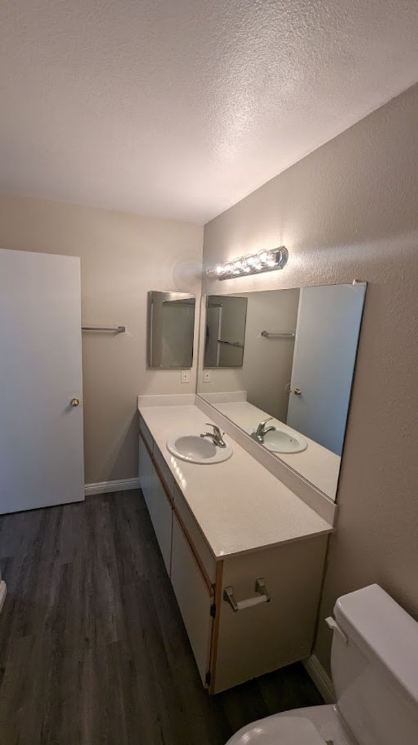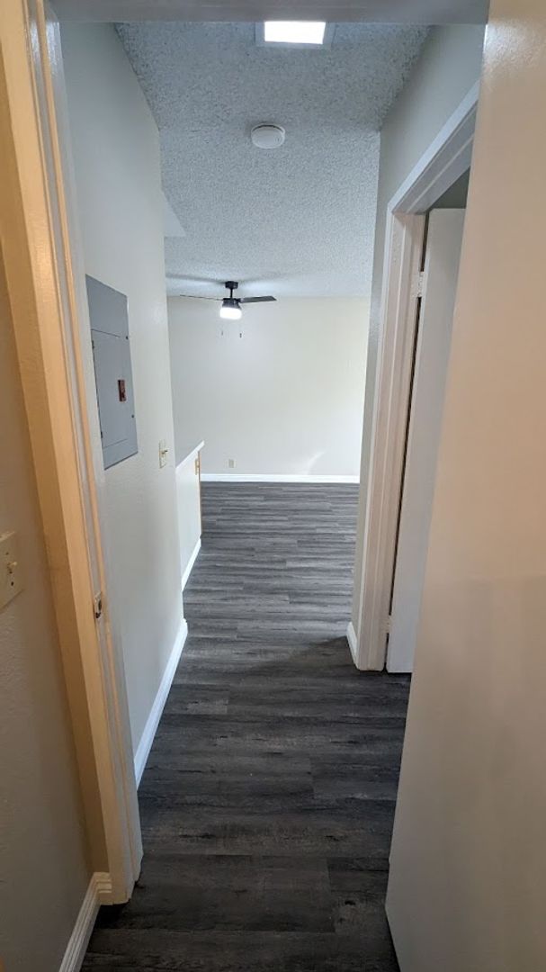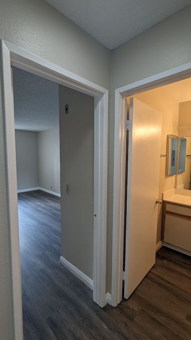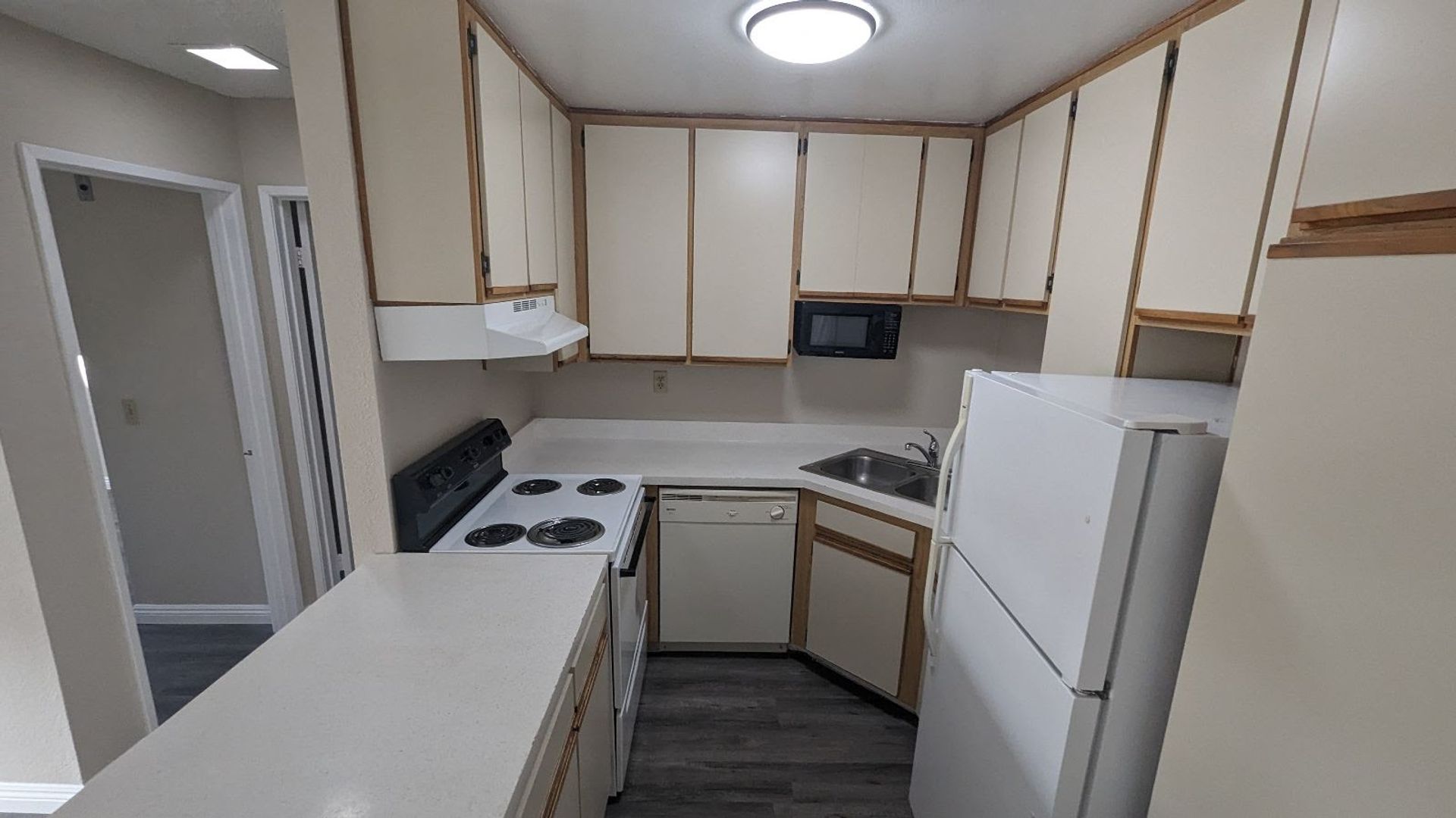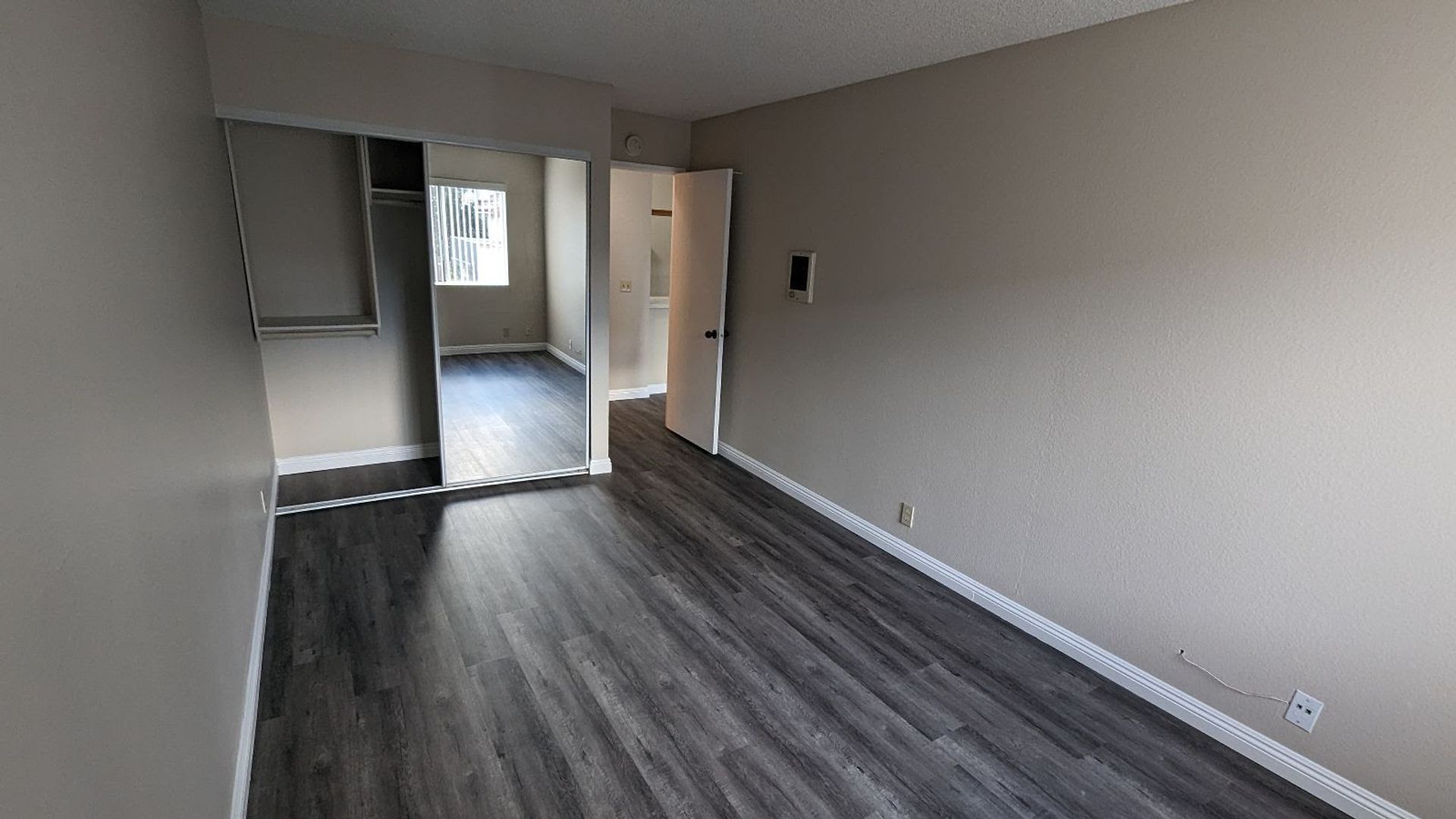The very spacious living room will effortlessly fit over-sized furniture and a large screen TV with room to spare. There is a patio off the living room. There is easy clean newer plank flooring.