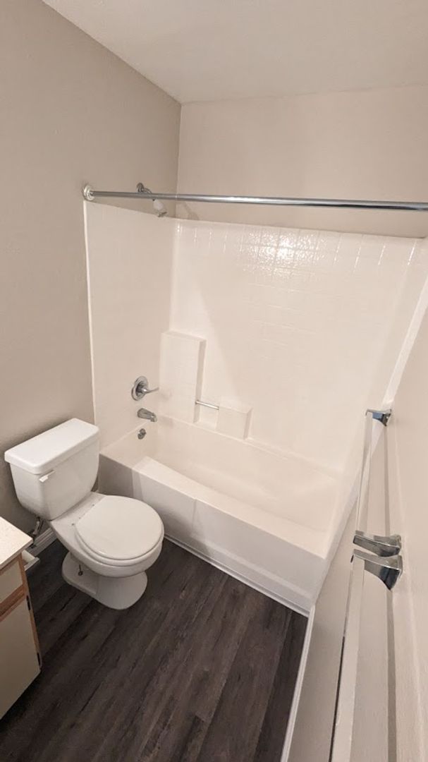 The bathroom offers a full tub/shower and a large counter space for getting ready.