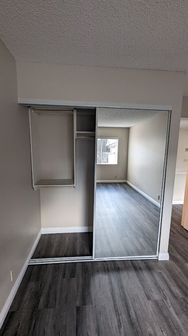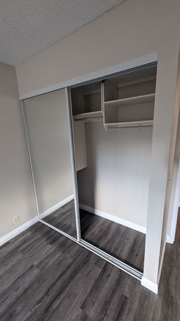 The bedroom is quite roomy as well and includes a mirror wardrobe closet!