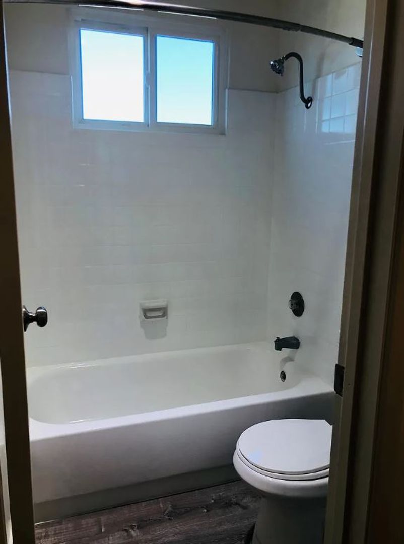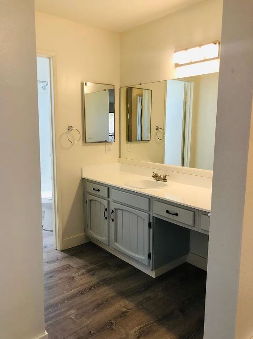 The bathroom offers a full tub/shower combo and a granite vanity.