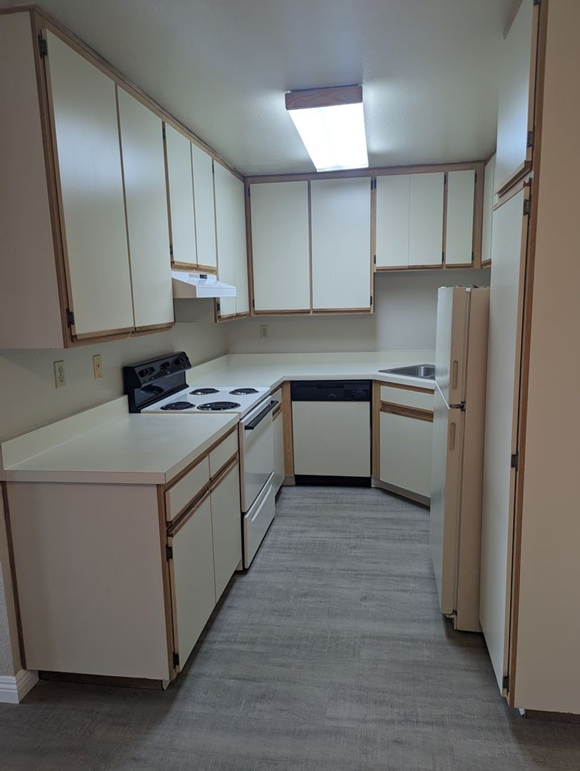 The kitchen overlooks the living room and allows your guests to keep you company as you cook! The very spacious living room will effortlessly fit over-sized furniture and a large screen TV with room to spare. The kitchen is equipped with a refrigerator, stove/oven/microwave and dishwasher. There is a small patio off the living room.